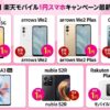 | 楽天モバイル申し込み+他社から電話番号そのまま乗り換え+対象製品購入で1円~ | Galaxy A25 5G 1円 arrows We2 1円 nubia S2R 1円 |