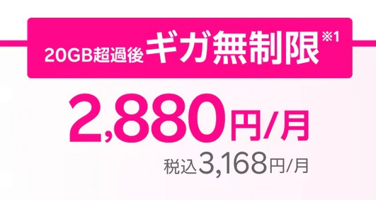- 20GB以上で上限無くデータ使い放題