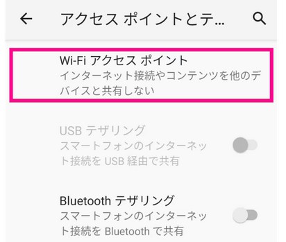 - 「Wi-Fiアクセスポイント」をタップする