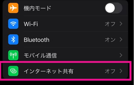 - 「インターネット共有」をタップする