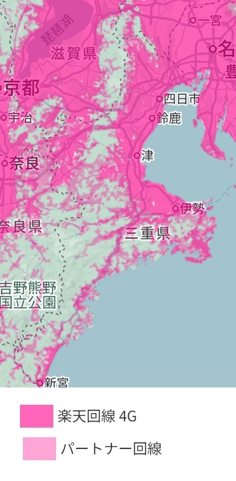 三重県県・伊賀エリア 楽天モバイル4G電波の状況
