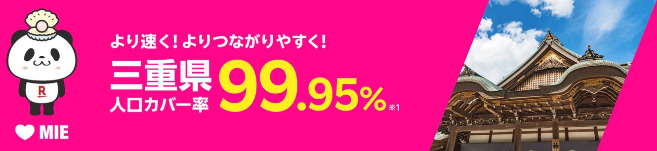 楽天モバイルの公式サイトでは三重県では人口カバー率 99.84%とされて