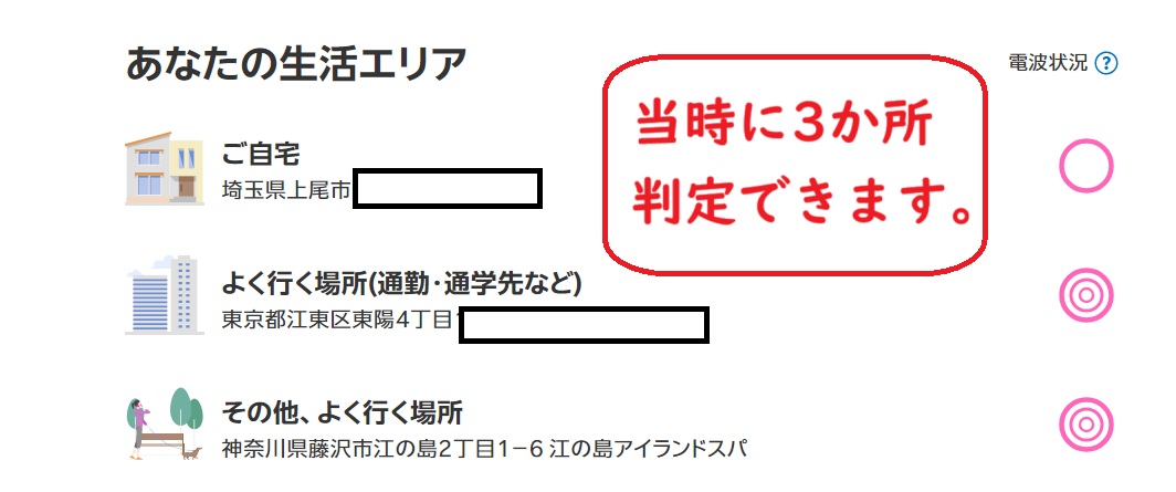 エリア圏内で表示