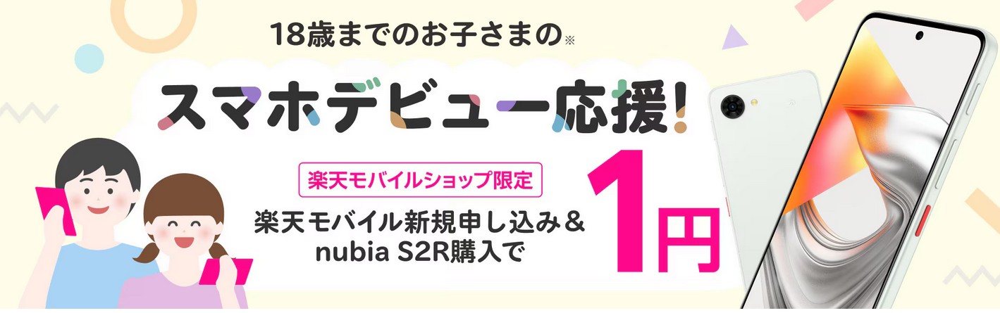 | 【ショップ限定】スマホデビュー応援!楽天モバイル新規申し込み&nubia S2R購入で1円! | nubia S2R 1円 |