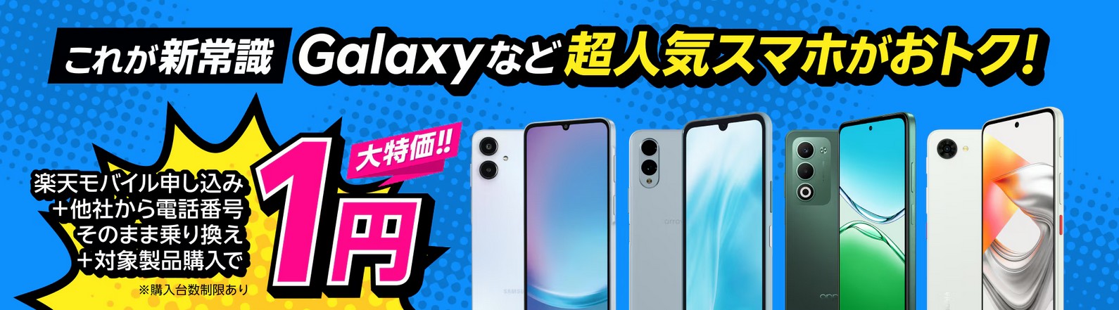 出典:「楽天モバイル申し込み+他社から電話番号そのまま乗り換え+対象製品購入で1円!」