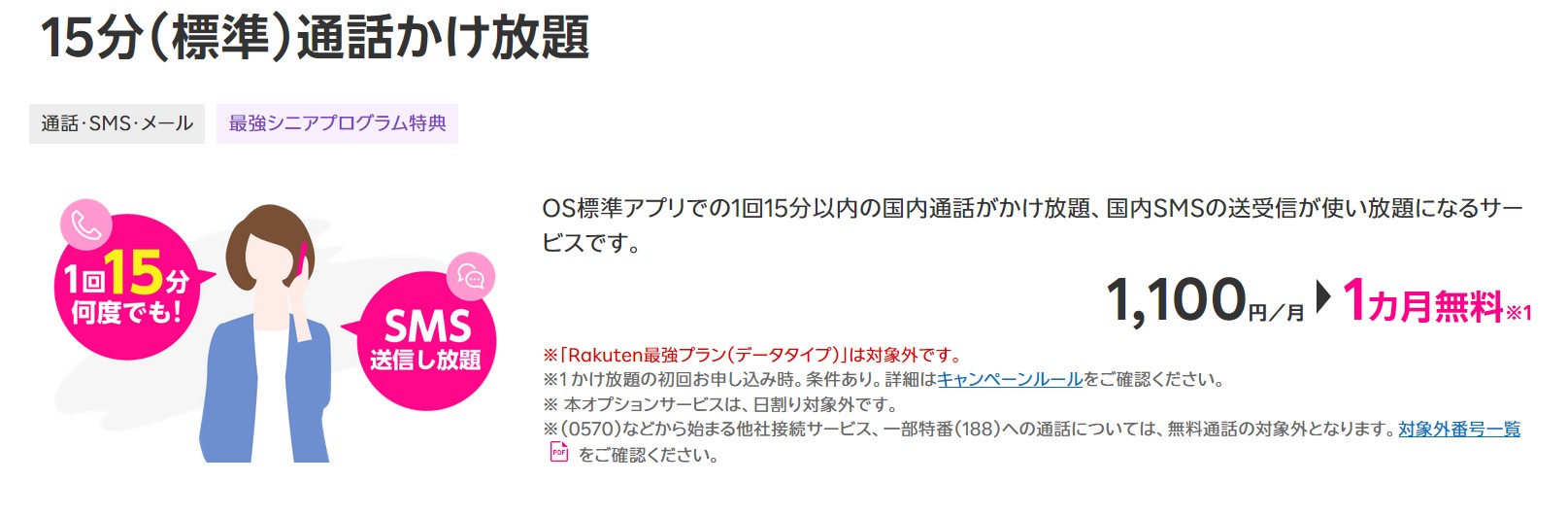 「Rakuten最強プラン」または「Rakuten最強U-NEXT」をお申し込みした回線で「Rakuten Link」を用いた発信で10秒以上の通話
